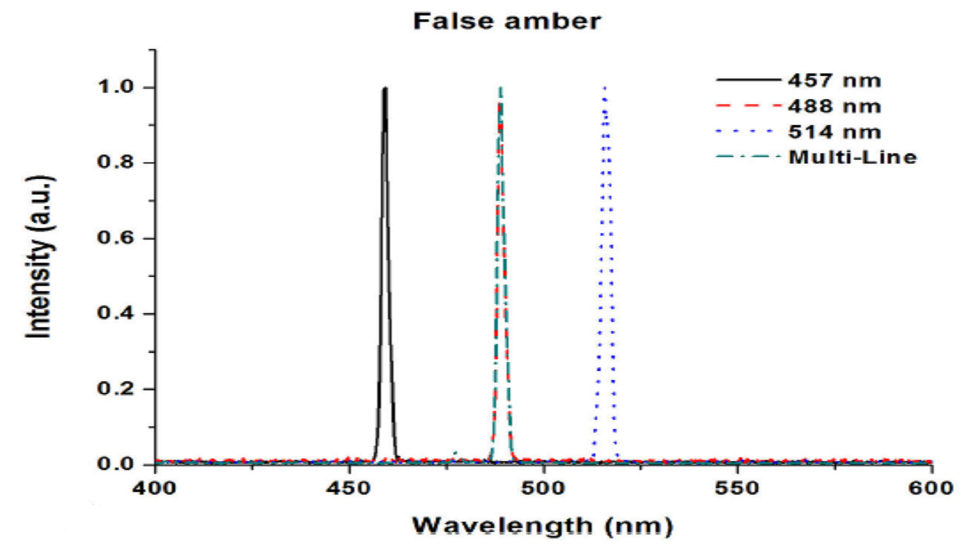 在2014年的一篇论文中,位于墨西哥莱昂的加拿大研究中心的研究人员将假琥珀与来自波罗的海和恰帕斯地区的标本进行了比较,观察了可调谐氩离子激光在457 nm、488 nm、514 nm和多线输出下激发的荧光2..