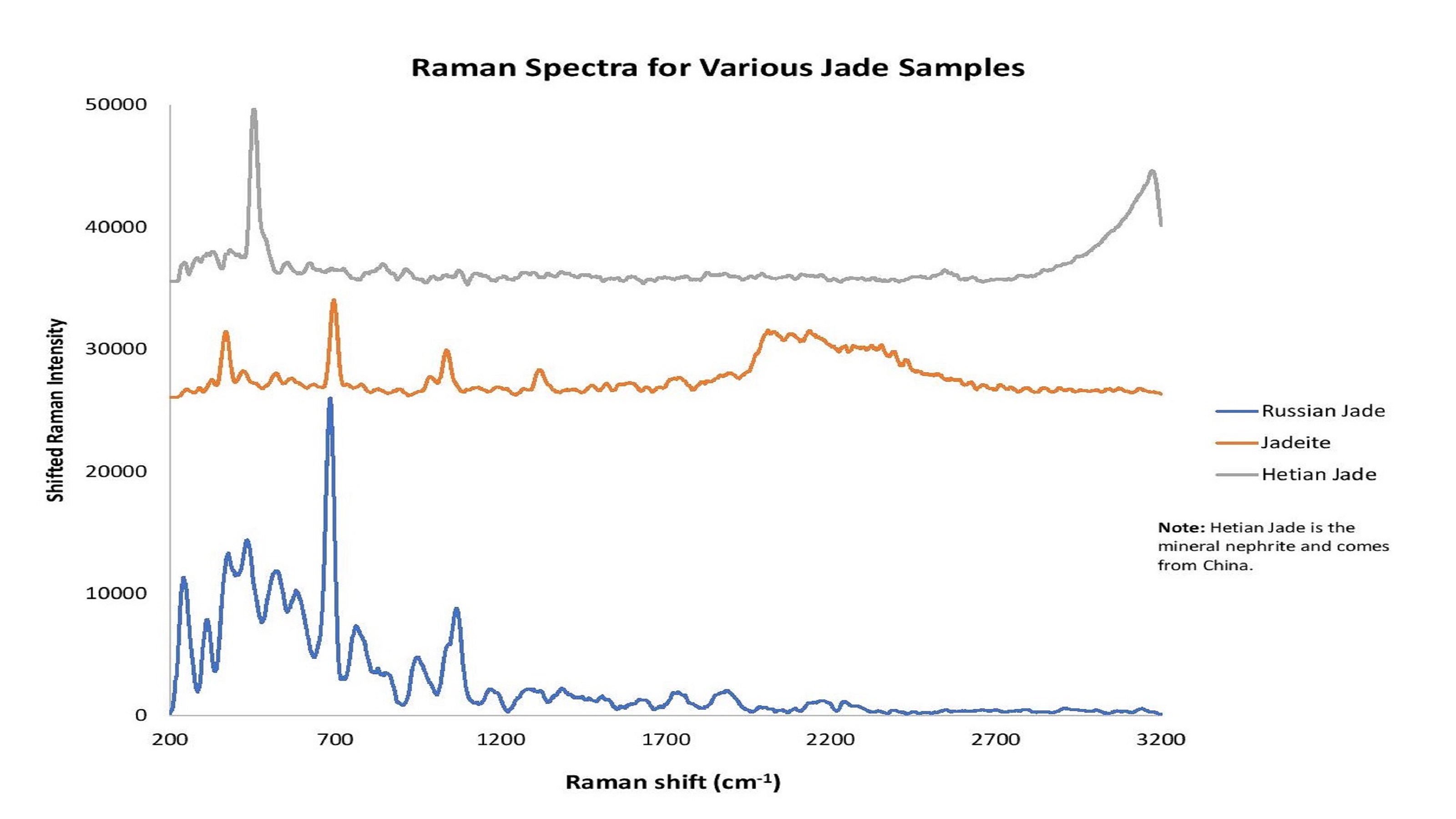 图9:“翡翠”一词描述了翡翠或软玉的矿物。拉曼光谱有助于揭示翡翠类型和产地的差异。