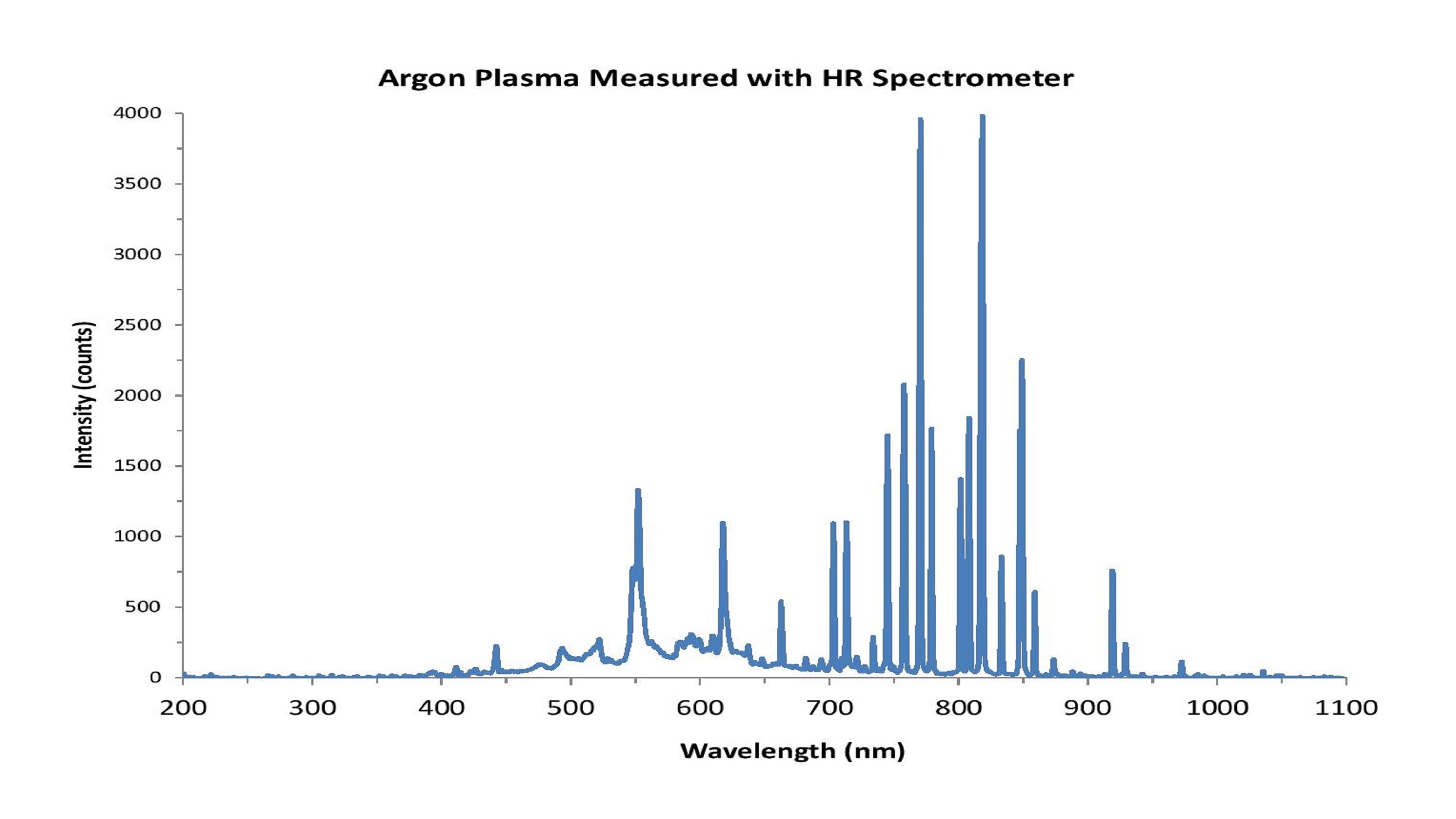 m UV-Vis-NIR光谱学是一个功能强大的方法easuring plasma emission to enable elemental analysis and precise control of plasma-based processes. The data shown here illustrate the power of the modular spectroscopy approach for plasma monitoring. The HR2000+ high resolution spectrometer and modular spectroscopy approach worked well to measure plasma emission spectra through the window of a plasma chamber as chamber conditions were adjusted.