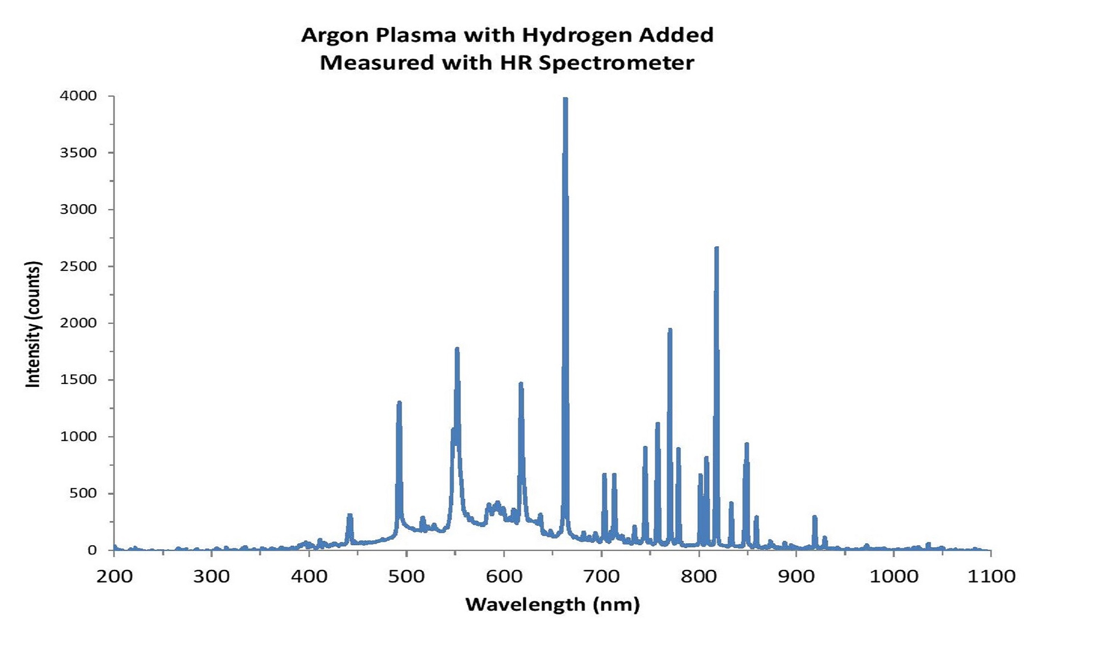 Figure 3: Adding hydrogen gas to the argon plasma changes its spectral properties.