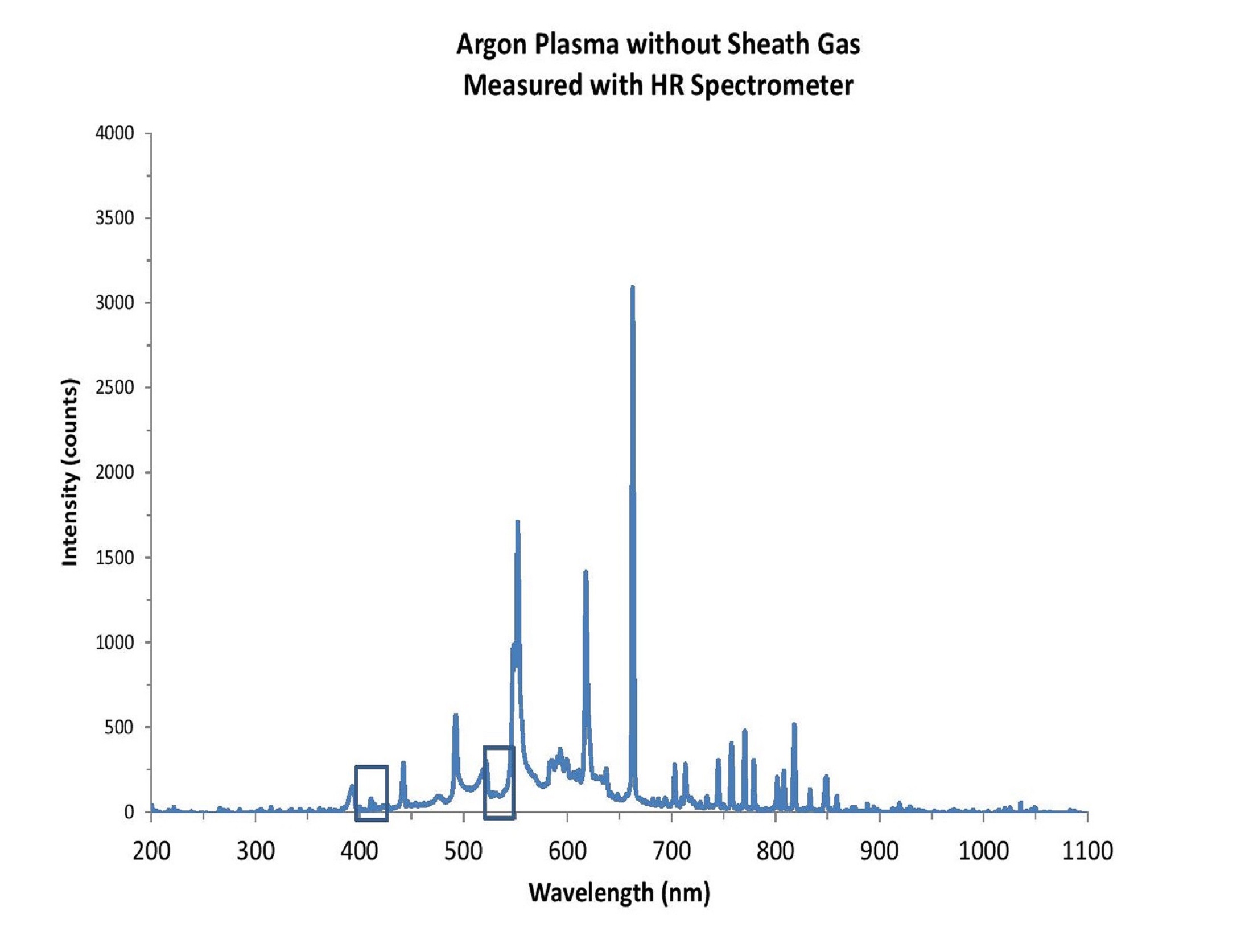 Figure 4: Argon plasma emission is measured in the vacuum chamber before the addition of sheath gas.
